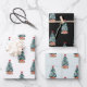 These three festive wrapping paper sheets feature a cute Christmas tree covered in snow with colorful presents at the bottom. The background colors (white, mint green, black) are customizable. Perfect for seasonal gift wrapping.