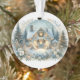 A serene snowy cottage glows beneath a star-lit winter sky, framed by twinkling trees, soft lantern light, and delicate botanical flourishes in muted blues, creams, and gentle golds. The scene blends cozy cottagecore charm with whimsical holiday warmth, wrapping the viewer in a nostalgic, storybook mood. Frosted evergreens, soft snowfall, and graceful florals create an enchanting, peaceful atmosphere perfect for lovers of dreamy folk aesthetics and soft watercolor winter themes. AI generated artwork.