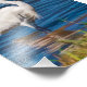 Dieses digitale Bild ist von einem schönen weißen Snowy Egret Vogel, der im blauen Wasser des Teiches sucht oder zu Mittag isst.