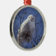 Snowy-Eule - weißer Vogel gegen einen Ornament Aus Metall