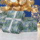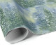 Eine Aquarellmalerei mit schneebedeckten Tannenbäumen, eingebettet in den Wald mit den Nordlichtern im Hintergrund, schafft eine friedliche Winterlandschaft.