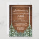 Qinceanera 15. Geburtstag Einladung. Rustikales braunes Holz, schneebedeckter Hintergrund und schneebedeckter Wald. Gemütlicher Vintager Landstil. In unserem Shop sind weitere Artikel in diesem Stil erhältlich. Sie können das Design weiter bearbeiten, Farben, Schriftart ändern und zusätzlichen Text hinzufügen, indem Sie auf den Link "Weiter anpassen" klicken.