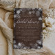 Elegante rustikale Brautdusche mit Holzverzierung und einem Rahmen aus eisweißen Schneeflocken. Personalisieren Sie Ihre Brautparty-Details in schicken, weißen Buchstaben. Eine schöne Wahl für elegante Brautpartys im Winter.