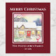 Basierend auf meiner Aquarellmalerei, Snowy Hütte, ein Gemälde eines schönen Winterbildes einer schneebedeckten englischen Hütte aus Strohdächern, mit einem dekorierten Nadelgehege vor dem Haus und einem niedlichen Schneemann, der im Vordergrund grüßt. Die Hütte war innen vollständig beleuchtet und strahlte mit der Wärme der Festsaison. Das Design hat einen dunkelroten quadratischen Rahmen auf der Außenseite und Texte, die oben und unten personalisiert werden können. Karo aus meinem Shop für passende Artikel!