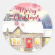 Snowy Hütte Aquarellmalerei Runder Aufkleber