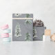 Ein Aquarellmuster aus Fichten- und Kiefernbäumen mit langen Schatten in Grün und Weiß auf grauem Hintergrund. Perfektes Weihnachtsgeschenkpapier.