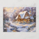 gemütliches Bauernhaus eingebettet in schneebedeckte Berge mit sanftem Bach, eingefangen in einem ruhigen Ölmalereistil.