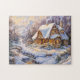 gemütliches Bauernhaus eingebettet in schneebedeckte Berge mit sanftem Bach, eingefangen in einem ruhigen Ölmalereistil.