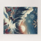 Snowy Night Moose Forest Mountains Boho Pattern Puzzle