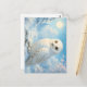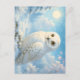 A beautiful postcard featuring a snowy owl resting quietly in a winter wonderland.