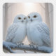 Snowy Owls On a Winter Branch Quadratischer Aufkleber