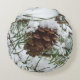 Snowy Pine Cone I Winter Nature Fotografy Rundes Kissen