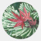 Kiefernzweig mit Schnee bedeckt und einige Blätter mit roten, orminalen Ahorngemälden.