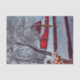 Snowy Red Barn mit Weihnachtslicht auf Zaun Seidenpapier