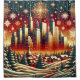 Dieses faszinierende Kunstwerk besticht durch eine festliche Stadtumgebung während der Weihnachtszeit. Die Vorderseite zeigt eine verschneite Landschaft mit Kiefern und einer schönen, klassischen, kuppelförmigen Kirche. Im Mittelfeld befinden sich große Gebäude, die eine urbane Skyline darstellen, im Hintergrund befindet sich ein Nachthimmel mit Sternen und großen Schneeflocken. Die warmen Rot-, Gold- und Jäger-Grün-Farbtöne verleihen der Winterkälte ein Gefühl von Ferienwärme. Dieses Design, das perfekt dazu geeignet ist, Ihrer Dekoration eine Touch von Urlaubsmagie und urbanem Charme hinzuzufügen, spiegelt den festlichen Geist einer schneebedeckten Weihnachtsstadt wider.