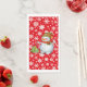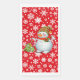 Ein Rot-Weiß-Party in Napkin mit weißen Schneeflocken und einem glücklichen Schneemann mit Mistleton in der Hand
