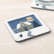 Snowy, Starry Night mit Cat und Santa Sleigh Getränkeuntersetzer