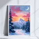 Snowy Summit Sunset | Winter Landscape Painting Poster