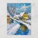 Snowy Village with Stream and Trees Fantasy Painti Postkarte