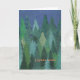 Eine schicke Weihnachtskarte mit einem Wald der Weihnachtsbäume im Schnee, von einem handgemalten Papiercollagenentwurf durch Judy Adamson. Der Gruß auf der Front, in der orange/rosa Beschriftung, ist frohe Weihnachten auf französisch und Sie können die innere Mitteilung personifizieren. (Gerade man klicken an + Knopf bestimmt das Bild die Größe neu, um das größte in Scheckkartengröße zu passen.)