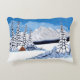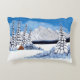 Ein akzentuiertes Kissen mit einer schönen Winterlandschaft inklusive schneebedeckten Bergen, rustikaler Hütte und schneebedeckten Evergreens. Text kann personalisiert oder gelöscht werden. Original-Kunstwerk von W.B.
