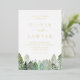 Feiern Sie Ihre Winterhochzeit mit dieser eleganten Einladung, die mit immergrünen Wasserbäumen und sanft fallendem Schnee besticht. Mit einem QR-Code können Sie Ihre UAWG- oder Hochzeitswebseite bequem erreichen. Wählen Sie aus schimmerndem Gold-, Silber- oder Rose-Goldfolientext, um eine luxuriöse, personalisierte Touch hinzuzufügen. Passen Sie Ihre Namen, Datum und Veranstaltungsdetails an. Diese Winterhochzeit lädt zu rustikalen, waldreichen oder bergischen Hochzeiten ein, die zeitlose Eleganz suchen.