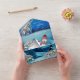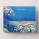 Eine blaue Winterfantasy-Szene mit einem geometrischen Goldrahmen mit frisch gefallenem Schnee in einem Winterwunderland-Design ist leicht mit Ihrer Formulierung für das Ehepaar.