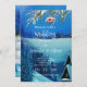 Eine blaue Winterfantasy-Szene mit einem lockigen Rahmen und frisch gefallenem Schnee in einem Winterwunderland-Design ist leicht mit Ihrer Formulierung für das Ehepaar oder zu einer Geburtstagseinladung zu gestalten.