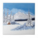 A ceramic tile with a beautiful winter scene including snowy mountains, rustic cabin and snow covered evergreens. The image and text can be personalized. Original artwork by W.B.