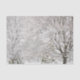 Das Design zeigt ein Foto von schneebedeckten Bäumen im Wald.