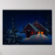 Eine schöne Szene von einer Zuhause an einem schneebedeckten Winterabend. Dieses Design sieht auf diesem Poster wirklich effektiv aus