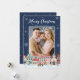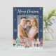 Versenden Sie Ihren Winterurlaub an Familie und Freunde mit einer Weihnachtskarte des Snowy Winter Village von Late Bloom Paperie! Die Weihnachtskarte zeigt oben "Frohe Weihnachten" in einem fett weißen Schriftzeichen. Am Ende der Karte befindet sich eine schneebedeckte Winterstadt mit Weihnachtsbeleuchtung, Weihnachtskränzen, Weihnachtsbäumen und einem Schneemann! Schneeflocken umranden die Karte in Weiß- und Hellblau mit marineblau Hintergrund. Personalisieren Sie die Vorderseite, indem Sie Ihren Namen und ein Foto hinzufügen. Die Karte kehrt zurück, um ein zusätzliches Foto anzuzeigen. Die niedliche Weihnachtskarte des Fotos wird jedem Empfänger ein Lächeln aufsetzen!