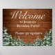 Geburtstagsparty Willkommensschild Rustikales braunes Holz, schneebedeckter Hintergrund und schneebedeckter Wald. Gemütlicher Vintager Landstil. In unserem Shop sind weitere Artikel in diesem Stil erhältlich. Sie können das Design weiter bearbeiten, Farben, Schriftart ändern und zusätzlichen Text hinzufügen, indem Sie auf den Link "Weiter anpassen" klicken.