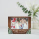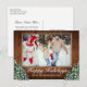 Happy Holidays grüßen Postkarte mit Ihrem Foto. Rustikales braunes Holz, schneebedeckter Hintergrund und schneebedeckter Wald. Gemütlicher Vintager Landstil. In unserem Shop sind weitere Artikel in diesem Stil erhältlich. Sie können das Design weiter bearbeiten, Farben, Schriftart ändern und zusätzlichen Text hinzufügen, indem Sie auf den Link "Weiter anpassen" klicken.