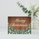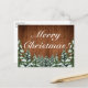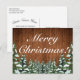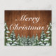 Weihnachts Gruß Postkarte. Rustikales braunes Holz, schneebedeckter Hintergrund und schneebedeckter Wald. Gemütlicher Vintager Landstil. In unserem Shop sind weitere Artikel in diesem Stil erhältlich. Sie können das Design weiter bearbeiten, Farben, Schriftart ändern und zusätzlichen Text hinzufügen, indem Sie auf den Link "Weiter anpassen" klicken.