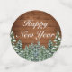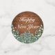Frohes Neujahr Konfetti. Rustikales braunes Holz, schneebedeckter Hintergrund und schneebedeckter Wald. Gemütlicher Vintager Landstil. In unserem Shop sind weitere Artikel in diesem Stil erhältlich. Sie können das Design weiter bearbeiten, Farben, Schriftart ändern und zusätzlichen Text hinzufügen, indem Sie auf den Link "Weiter anpassen" klicken.