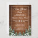 Einladung zum neuen Jahr. Rustikales braunes Holz, schneebedeckter Hintergrund und schneebedeckter Wald. Gemütlicher Vintager Landstil. In unserem Shop sind weitere Artikel in diesem Stil erhältlich. Sie können das Design weiter bearbeiten, Farben, Schriftart ändern und zusätzlichen Text hinzufügen, indem Sie auf den Link "Weiter anpassen" klicken.