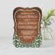 Sweet 16 Geburtstagseinladung. Rustikales braunes Holz, schneebedeckter Hintergrund und schneebedeckter Wald. Gemütlicher Vintager Landstil. In unserem Shop sind weitere Artikel in diesem Stil erhältlich. Sie können das Design weiter bearbeiten, Farben, Schriftart ändern und zusätzlichen Text hinzufügen, indem Sie auf den Link "Weiter anpassen" klicken.