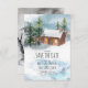 Diese Save the Date weihnachtliche Party Einladung Postkarten sind eine schneebedeckte Winterlandschaft mit einer Holzhütte im Wald und laden Ihre Gäste dazu ein, ihr Party behalten! Copyright The Holiday Shop, alle Rechte vorbehalten.