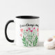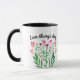 Zurück von der Tasse hat bunten Watercolor-Blumenblumenstrauß in den Rosa und in den Grüntönen mit Placeholder oben für Ihre eigene Mitteilung.