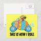 Dieses niedliche Osterdesign zeigt einen lustigen Osterhasen, der ein Auto fährt, das wie ein riesiges, dekoriertes Osterei aussieht, und die Überschrift "So rolle ich!"