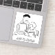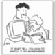 Einfach suchen, wie Sie einen neuen Computer einschalten. Funny Computer Cartoon. Neue Computerbesitzer suchen in der Broschüre Anleitungen, um herauszufinden, wie sie eingeschaltet werden können. Geschenk für Computerbenutzer.
