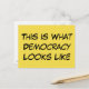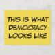 In einem lässigen, mutigen Schriftart erscheint der Begriff "Das ist, wie Demokratie aussieht" im Vordergrund. Wenn sich die Menschen nicht einig sind, gibt es Systeme, um ihre Sorgen rechtlich zum Ausdruck zu bringen. Senden Sie eine Nachricht von der Erinnerung. |Schwarze Buchstaben auf hellgelbem Hintergrund; Sie wurden entwickelt, um sich in einer Flut von Nachrichten zu erfreuen. Sie können Ihre Farben, Schriftart, Größen, sogar die Nachricht ändern. Editieren Sie diese Postkarte in einer beliebigen Form!