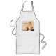 Weiße, lange Schürze mit Druck von der Skizze des Salzschüttels-apparat und Eier