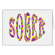 Lila, rosa, gelbe und grüne Swirl-Stilbriefe bilden das Wort Sober in den 60er Jahren inspiriert Retro-Grafik