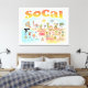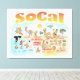 Die helle und farbenprächtige Szene bietet einen spektakulären Blick auf Südkalifornien - wackelige Figuren, die am Strand und in der Wüste von SoCal zu sehen sind, die Los Angeles, San Diego, Orange Landkreis, Santa Barbara, Riverside, Palm Springs, Anza Borrego und Joshua Tree Parks sowie die Grenzstädte Tijuana, Tecate und Mexiko zeigen. Diese zauberhafte Szene hat alles - ein Surfer hängt zehn, ein Killerwal springt aus dem Wasser, Zootiere begrüßen die Touristen, ein muskulöses Strandpaar beide flex zu beeindrucken, wie ein T-Rex eine Herausforderung brüllt und ein Tank sich in Position und vieles mehr..