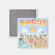 Die helle und farbenprächtige Szene bietet einen spektakulären Blick auf Südkalifornien - wackelige Figuren, die am Strand und in der Wüste von SoCal zu sehen sind, in denen Los Angeles, San Diego, Orange Landkreis, Santa Barbara, Riverside, Palm Springs, Palm Wüste, El Centro und Anza Borrego und Joshua Tree Park sowie die Grenzstädte Tijuana, Tecate, und Mexiko. Diese zauberhafte Szene hat alles - ein Surfer hängt zehn, ein Killerwal springt aus dem Wasser, Zootiere begrüßen die Touristen, ein muskulöses Strandpaar beide flex zu beeindrucken, wie ein T-Rex eine Herausforderung brüllt und ein Tank sich in Position und vieles mehr..