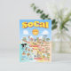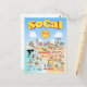 Farbenfrohe Aussicht auf Südkalifornien - wackelige Figuren, die am Strand und in der Wüste von SoCal ausgestellt werden, in denen Los Angeles, Santa Barbara, San Diego, Riverside, Palm Springs, Anaheim, Anza Borrego und Joshua Tree Parks zu sehen sind - auch die Grenzstädte Tijuana, Tecate und Mexicali. Diese SoCal-Karte hat alles - ein Surfer hängt zehn, eine Meerjungfrau auf einem Felsen, ein Killerwal springt aus dem Wasser, Zootiere grüßen die Touristen, ein muskulöses Strandpaar beide flex zu beeindrucken, während ein T-Rex eine Herausforderung brüllt und ein Tank in Position und vieles mehr...