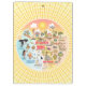Ein spektakulärer Cartoon Südkaliforniens - mit Los Angeles, Orange Landkreis, San Diego. Diese helle und charmante Szene hat alles - ein Surfer hängt zehn, während ein Paar im Wasser spielt, ein Killerwal springt hoch, ein muskulöses Strandpaar flex zu beeindrucken, Zoo-Tiere warten auf Touristen, ein T-Rex brüllt eine Herausforderung, alles unter der strahlenden kalifornischen Sonne, die hoch über alles scheint.
