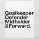 Torhüter, Verteidiger, Mittelfeldspieler & Vorwärts.